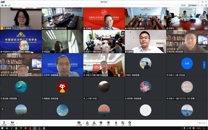 2022年5月20日,中国铁建股份有限公司、中国岩石力学与工程学会共同组织召开高地应力软岩大变形隧道支护试验方案专题线上研讨会。中国岩石力学与工程学会党委书记、理事长何满潮院士、中国铁建股份有限公司雷升祥总工程师、中国岩石力学与工程学会党委副书记、秘书长杨晓杰教授、中国铁建科技创新部代敬辉总经理、中国铁建川藏指挥部刘晖指挥长、铁一院李国良勘察设计大师、深地空间科学与工程研究院执行院长、学会兼职副秘书长陶志刚教授、软岩分会秘书长郭志飚教授、深部国家重点实验室刘冬桥副教授、郭平业副教授等应邀参会。中国铁建科技创新部、中国铁建川藏指挥部、铁一院、中铁十一、十二、十六、十八、二十局等单位领导合计40余人参加研讨会。会议由中国铁建股份有限公司总工程师雷升祥主持。
