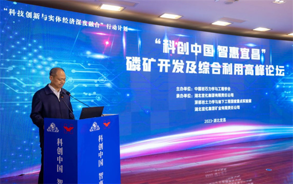 2023年4月16日,"科创中国 智惠宜昌"磷矿开发及综合利用高峰论坛在湖北宜昌成功召开。论坛由中国岩石力学与工程学会主办,湖北宜化集团有限责任公司、深部岩土力学与地下工程国家重点实验室、湖北宜化集团矿业有限责任公司承办。