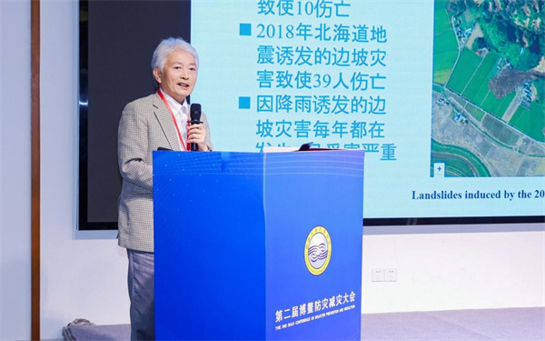 日本工程院院士、河北工业大学长江讲席教授,中国岩石力学与工程学会人工智能技术实用化专业委员会主任委员陈光齐做了题为"地震诱发边坡灾害的数值模拟与风险管理策略"的报告。