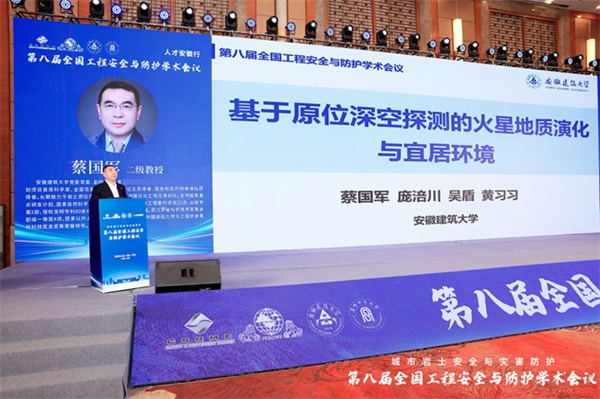 5月11日下午,大会以分会场报告形式展开,来自全国各高校、单位的42位专家学者以 "工程致灾机理与灾害防控""安全与防护新理论与工程应用""安全与防护新材料、新工艺和新技术"3个议题开展分会场报告,分享自己以及团队在相关领域的研究进展与科研成果。5月12日上午,大会特邀报告环节由东南大学刘松玉教授、西安建筑科技大学邵珠山教授、天津城建大学刘中宪教授、三峡大学刘杰教授、成都理工大学王东坡教授、东南大学度杜延军教授、同济大学郑永来教授、合肥工业大学查甫生教授、安徽建筑大学蔡国军教授分别做题为:"基于原位测试参数的地基加固设计与安全控制""高地应力软岩隧道柔性支护体系的力学理论基础研究与应用""区域复杂场地建筑群地震灾场快速边界元-有限元耦合模拟""磁导向自汇聚工程浆液特性及施工技术研究""崩塌滚石灾害致灾机制及风险防控""城市工业污染场垂直阻隔技术研究进展""真三轴条件下类岩石材料裂纹扩展机理及细观损伤力学模型研究""膨胀土边坡表浅深一体化生态防护技术与应用研究"和"基于原位深空探测的火星地质演化与宜居环境"的大会报告。