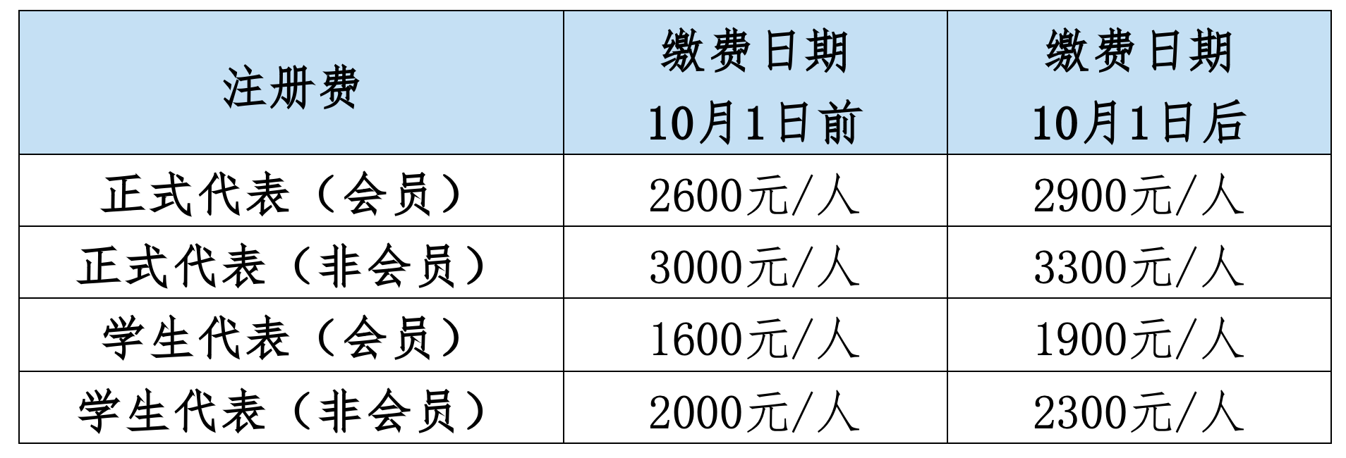 注册费由学会统一管理,参加分会场的代表请注册成都主会场,并选择第六分会场。以下为成都主会场会议注册费相关信息,分会场不另收会议注册费。