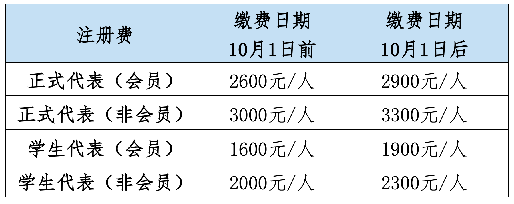 注册费由学会统一管理,参加分会场的代表请注册成都主会场,并选择第十二分会场。以下为成都主会场会议注册费相关信息,分会场不另收会议注册费。