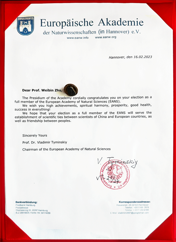 欧洲自然科学院总部位于德国汉诺威(Hannover),由多国科学院院士及知名学术团体创建,覆盖了德国、俄罗斯、亚美尼亚、阿塞拜疆、格鲁吉亚、匈牙利、以色列、哈萨克斯坦、摩尔多瓦、立陶宛、乌克兰、日本等33个国家的国际科学组织,是国际上跨地域和学术领域认可度最高、影响最大的科学组织之一。