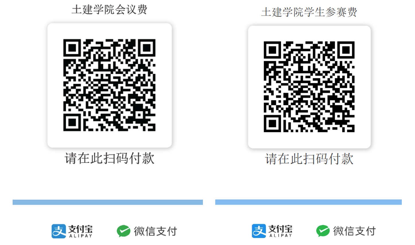 会议费和学生参赛费的付款二维码如下图所示,请认真填写发票抬头信息、纳税人识别号、接收电子发票邮箱等信息,根据系统指引完成缴费。