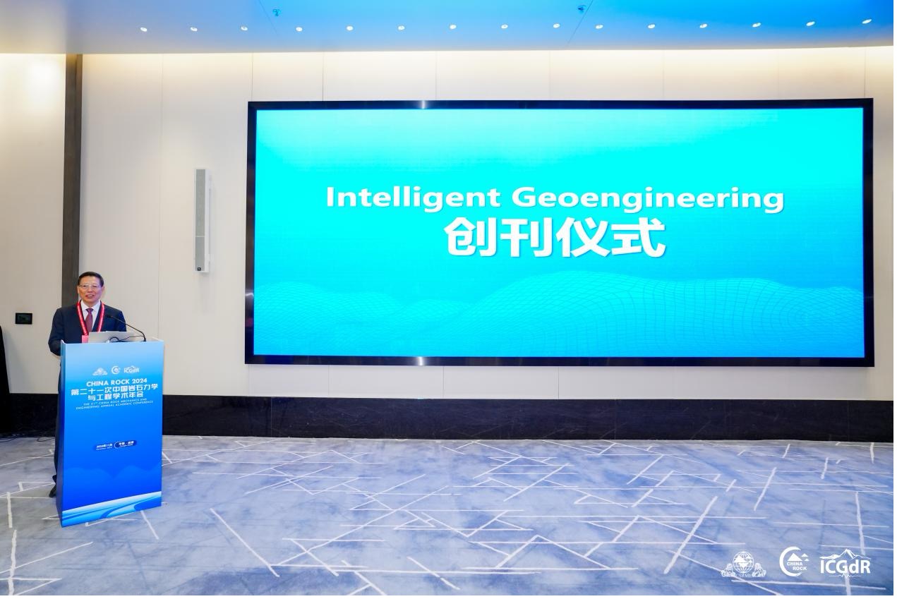 成立大会上,隆重举行了《Intelligent Geoengineering》期刊创刊仪式。学会理事长、期刊主编何满潮院士在创刊仪式上发表了期刊创刊致辞。他指出《Intelligent Geoengineering》期刊旨在构建一个全球学术平台,促进人工智能、大数据等新技术在岩石力学与工程中的应用,推动创新解决方案,鼓励跨学科合作,提升全球影响力,推动岩土工程的智能化发展。《Intelligent Geoengineering》期刊是中国岩石力学与工程学会继《Rock Mechanics Bulletin》之后作为第一主办单位主办的第二本国际英文期刊,由学会理事长何满潮院士、河北工业大学马国伟教授和陈光齐教授、美国加利福尼亚大学伯克利分校的Steven Glaser教授共同担任主编。