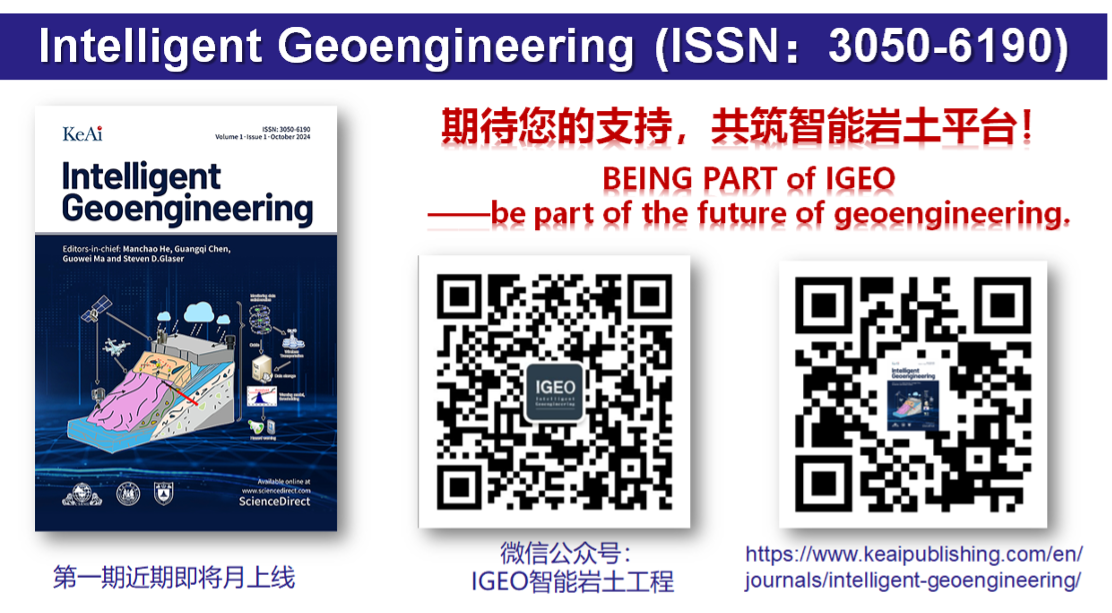 《Intelligent Geoengineering》期刊是中国岩石力学与工程学会继《Rock Mechanics Bulletin》之后作为第一主办单位主办的第二本国际英文期刊,由学会理事长何满潮院士、河北工业大学马国伟教授和陈光齐教授、美国加利福尼亚大学伯克利分校的Steven Glaser教授共同担任主编。