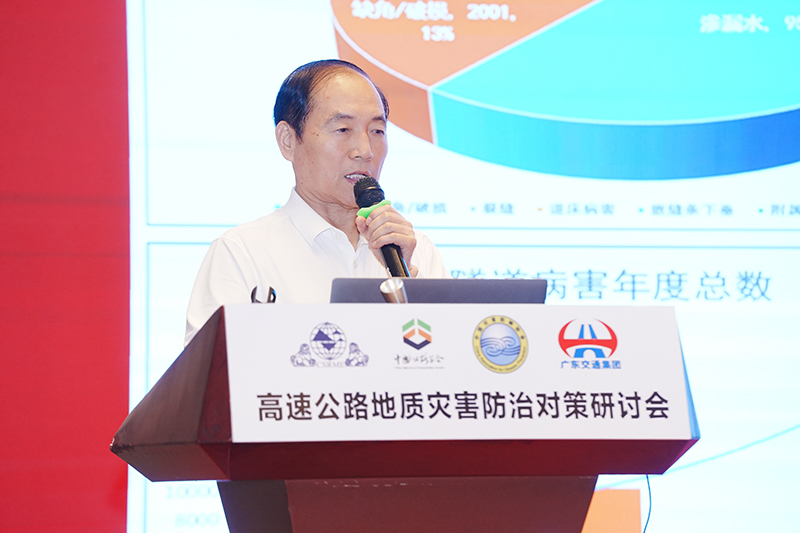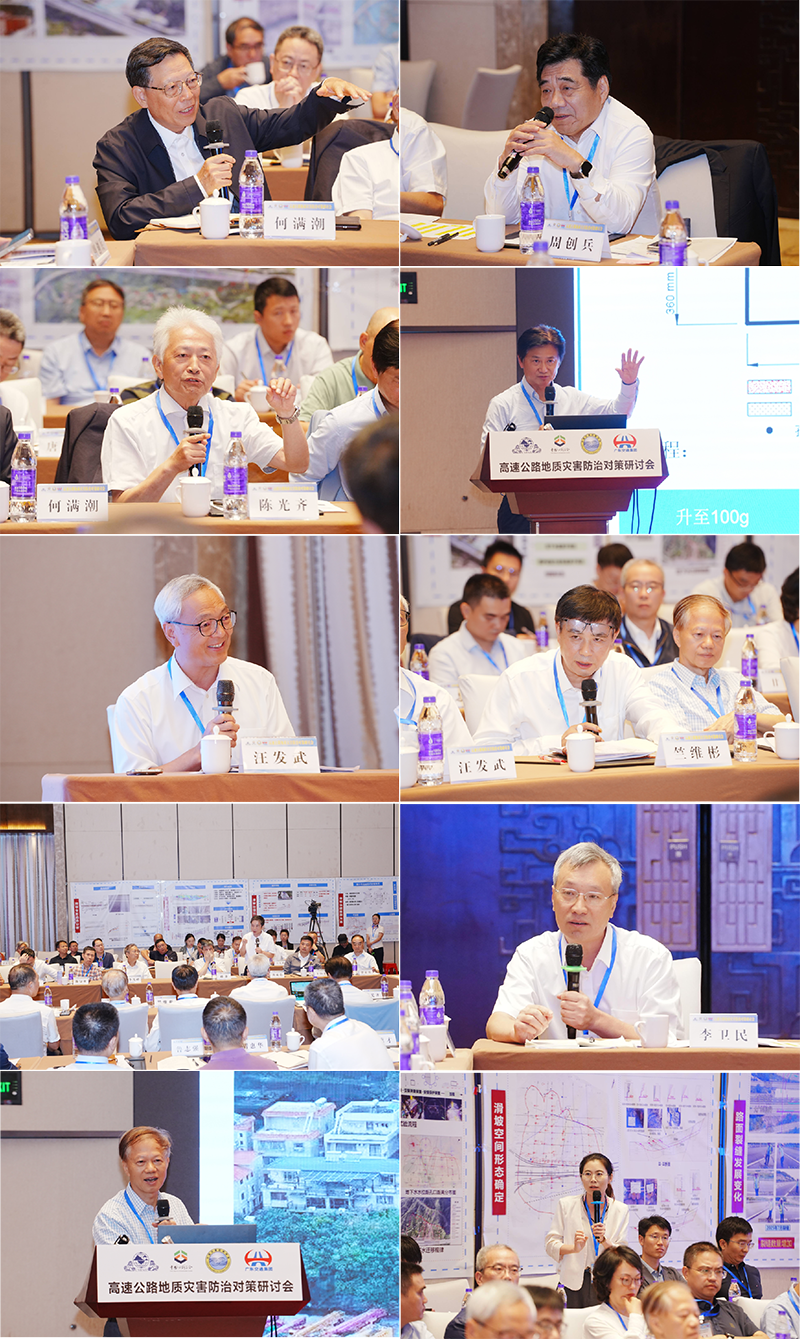 9月20日-21日,三家学会与广东省交通集团有限公司联合主办的“高速公路地质灾害防治对策研讨会”在广东惠州顺利召开。本次会议受到交通运输部公路局、广东省交通厅等相关部门的高度重视,于海洋副局长、黄成造副厅长到会指导。三个学会分别推荐本领域权威专家参会并做3场特邀报告。会议还设置了1场院士报告,2场专家报告,和一场专题研讨。来自全国交通、地质、灾害防治等领域的顶尖专家、企业代表及行业管理者齐聚一堂,围绕高速公路地质灾害防治的关键技术、实践难题与未来方向展开深度研讨。 中国科学院院士、中国岩石力学与工程学会理事长何满潮详解“公路生命线工程——地灾预报AI大模型分析系统”,分析了如何应用人工智能大模型分析海量数据,由生命线工程聚焦到灾害点,并结合牛顿力监测,实现地质灾害防控的发展思路。 中国工程院院士、中国公路学会常务理事王复明作的报告“道路等基础设施水灾变防控技术的发展与‘工程医院’共享平台建设进展”,分享了新型高聚物防水材料及多个交通基础设施病害治理、水灾防控的案例成果,还介绍了“工程医院”建设情况和发展模式。 中国灾害防御协会会长郑国光以“科技赋能地质灾害风险防范”为题,结合案例深入分析科技赋能防灾减灾的发展成果,强调了防范地质灾害科技发展、完善群测群防体系及机制的多重重要性。 中国工程院院士、北京科技大学城镇化与未来城市研究院院长岳清瑞以“路桥安全风险监测预警技术实践”为题做原始报告,介绍了道路与桥梁安全面临的挑战、“天空地”一体化监测预警技术和未来挑战与展望三方面的探索研究成果。 广东省交通集团有限公司总工程师李卫民介绍了“广东高速公路路基工程地质灾害防治实践”,通过案例分析,分享了广东交通集团多年来在广东高速公路建设管养、防灾抢险过程中积累的宝贵经验。 中国铁道科学研究院集团有限公司高级工程师袁坤介绍了元善互通边坡灾害治理过程中,从发现灾害、确定灾害类型,到探索治理对策、实施灾害处置等环节积累的经验。