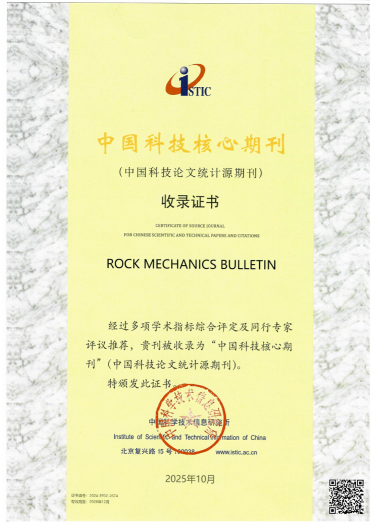 Rock Mechanics Bulletin首次入选“中国科技核心期刊”