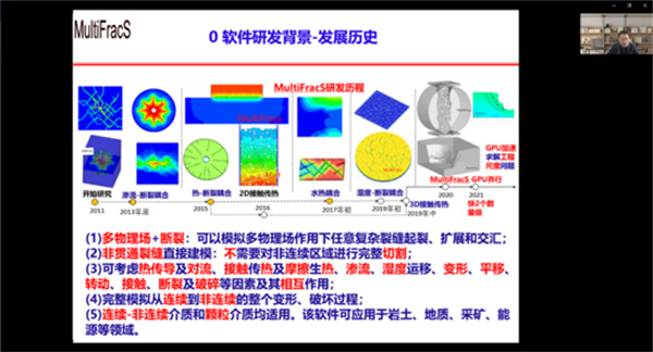 2022年11月3日,在ChinaRock2022 第十九次中国岩石力学与工程学术年会期间,首届FDEM多物理场断裂分析软件MultiFracS培训班召开,本场技术培训由中国岩石力学与工程学会青年工作委员会和中国岩石力学与工程学会岩体数学物理模拟专业委员会联合主办。此次培训采用线上方式举办。国家杰青郑宏教授为首届MultiFracS培训班致欢迎辞。