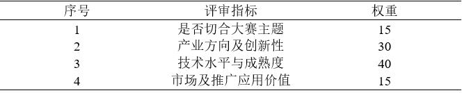 初赛评审采取通讯评审方式,评审委员会由业内学者和企业家组成,评审指标如下表所示 (二)决赛评审