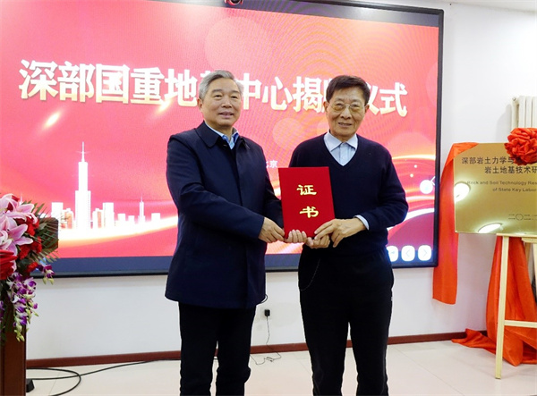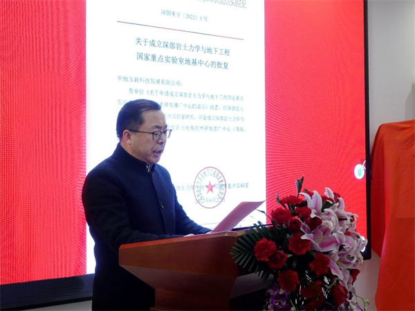 2024年1月19日,深部国重地基中心发展建设研讨会暨中心揭牌仪式隆重举行。中国科学院院士、中国岩石力学与工程学会党委书记理事长何满潮,住建部科技与产业化发展中心曹吉昌处长、、中国工程院刘汉龙院士、清华大学李广信教授、中国建筑设计研究院总工任庆英大师、中国建筑集团毛志兵总工、东南大学刘松玉教授、北京城建集团张晋勋总工等院士专家、领导嘉宾、地基中心学术委员会、发展战略咨询委员会委员代表,以及来自兄弟中心、合作单位、行业相关学协会代表等40余人参加线下会议,1万余人次观看视频直播。会议由中国岩石力学与工程学会岩土地基工程分会朱春明理事长主持。 何满潮院士在致辞中指出,地基中心的设立,是着实推进科技成果向应用转化的重大举措。希望地基中心在研发和推广工作中要统筹规划明确目标,要提高站位,要发挥协同优势,搭建更具创新实力的研发平台,加快推进科技成果"盆景"向市场"风景"转化。