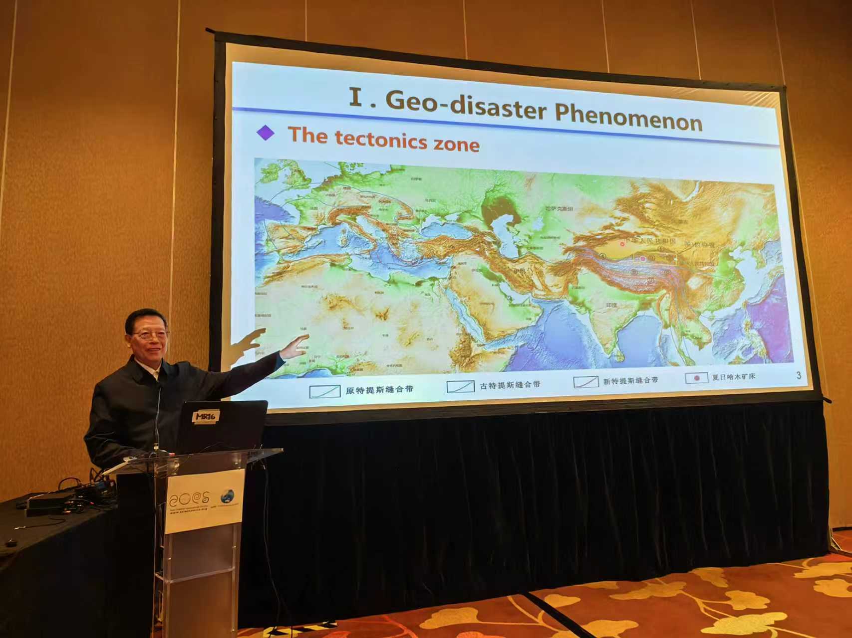 31日上午,理事长何满潮院士在固体地球(Solid Earth)会场作题为“Accurate Prediction of Geohazards”报告,系统介绍了我国在滑坡灾害预测领域应用牛顿力监测技术的成功实践,并前瞻性地提出了利用跨断层牛顿力测量进行地震预测的新思路,其创新性研究成果引发了与会专家的热烈讨论和高度关注。